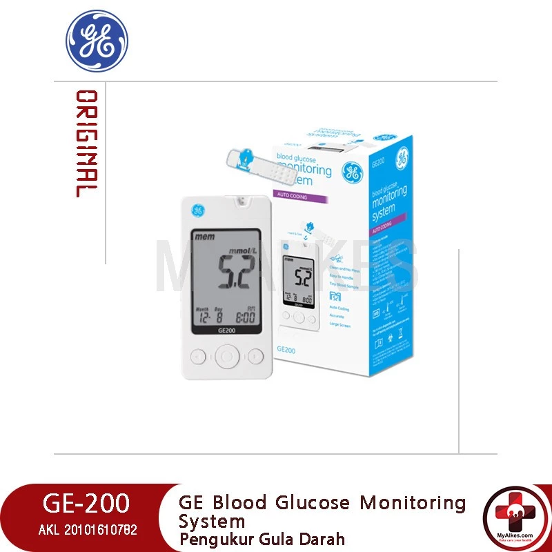 GE 200 adalah alat ukur gula darah dengan hasil yang akurat dan terpercaya. Dengan teknologi Auto Coding pemakaian lebih praktis memberikan hasil yang tepat dan akurat. Di desain dengan bentuk yang simpel dan ergonomis sangat mudah untuk dibawa bepergian, bersih dan tidak berceceran.